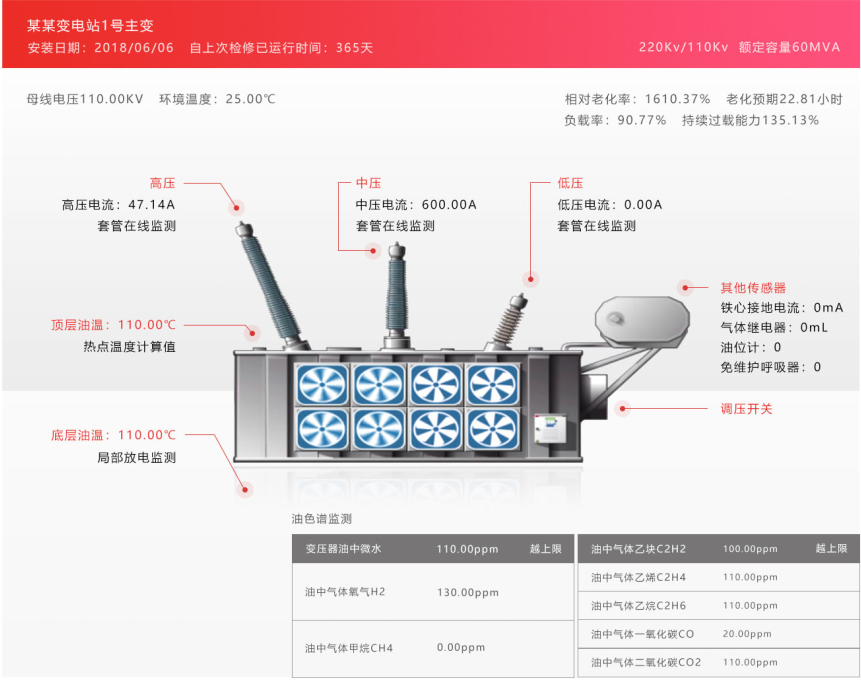 惠嘉與高校及電力公司合作研發(fā)的智能診斷系統(tǒng):變壓器老化預(yù)測、運行狀態(tài)監(jiān)控、故障診斷通過智能診斷系統(tǒng),提供變壓器全壽命周期的綜合管理。